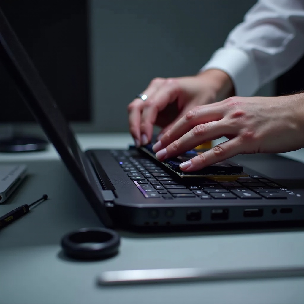 Уклањање Старе Видео Картице: Искључите лаптоп и искључите периферне уређаје. Пажљиво отворите кућиште лаптопа, затим одшрафите и уклоните постојећу видео картицу, искључујући све каблове.
